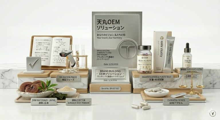 天丸製薬の小ロット対応(500個〜)により、複数カテゴリを小ロットで試験し、成果を確認してから増産するという低リスク戦略が可能になりました。小ロットOEMの活用については小ロットOEM活用ガイドが参考になります。